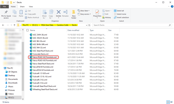 The composite decks in the program are all based on spreadsheet data. Navigate to this database folder in C:\RISA User Data\%username\Decks.