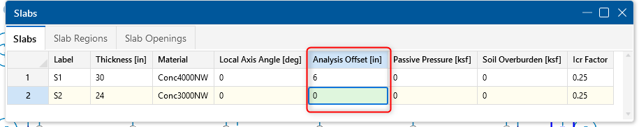 You can modify the slabs or beams using the Analysis Offset either graphically or in the spreadsheets. The slab or beams can be offset in the downward direction.