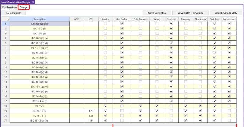 RISA-3D includes material specific checkboxes on the Design tab of the...