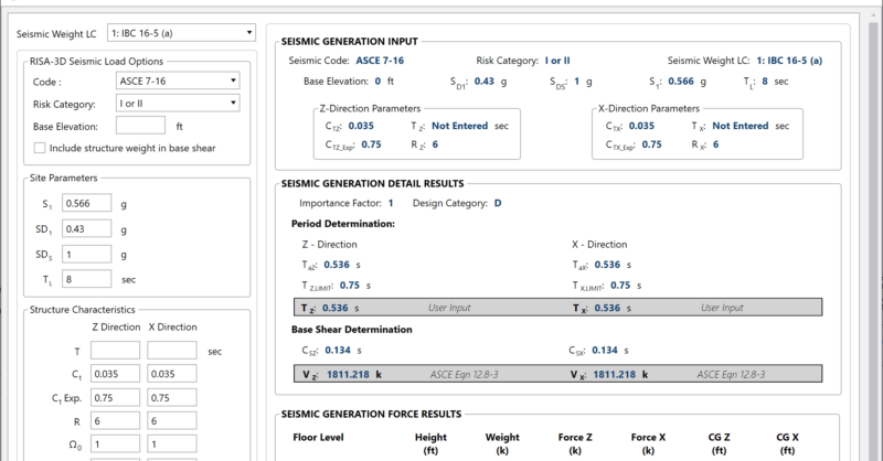 Seismic Forces are generated automatically using seismic parameters R,...