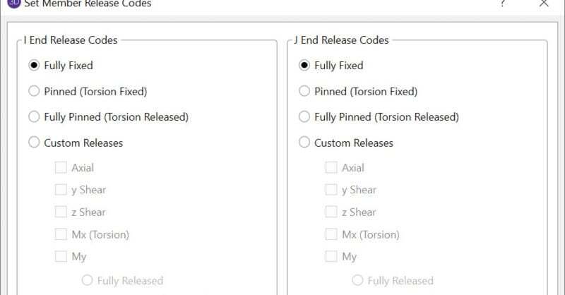 In RISA-3D, there are numerous options for Member End Releases which...